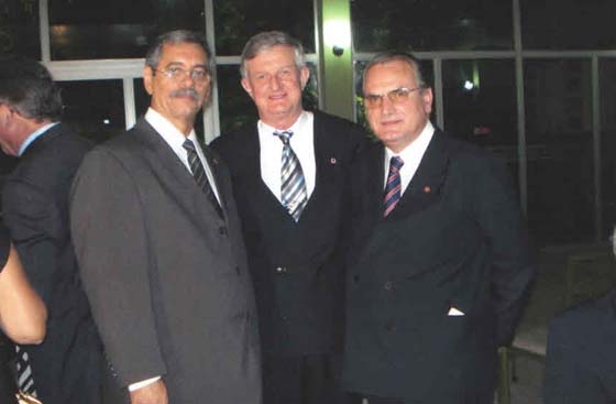 Dr. Fernando Gueiros (Presidente da Federação Nacional dos Odontologistas – FNO), Dr. Sergio Callegari e Dr. Miguel Nobre (Presidente do Conselho Federal de Odontologia – CFO) na Solenidade de 60 anos da Federação Nacional dos Odontologistas em novembro de 2008 – Recife.