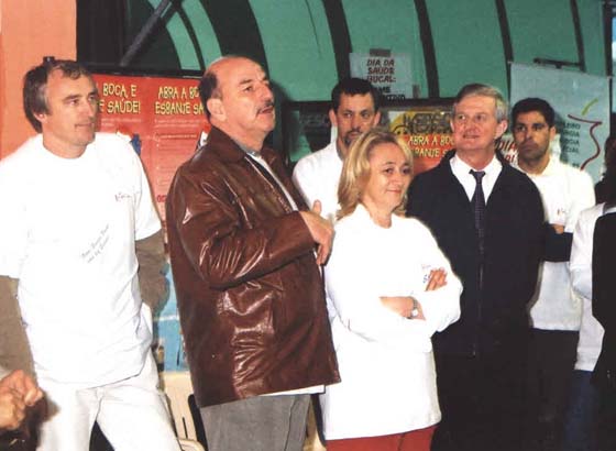 Dr. Melchior Verza, Dr. Osmar Terra (Secretário da Saúde do RS), Sra. Justina Onsi (Secretária da Saúde de Caxias do Sul), Dr. Ivan Susin, Dr. Sergio Callegari e Dr. Lauro Fontoura na 2ª Semana da Saúde Bucal.